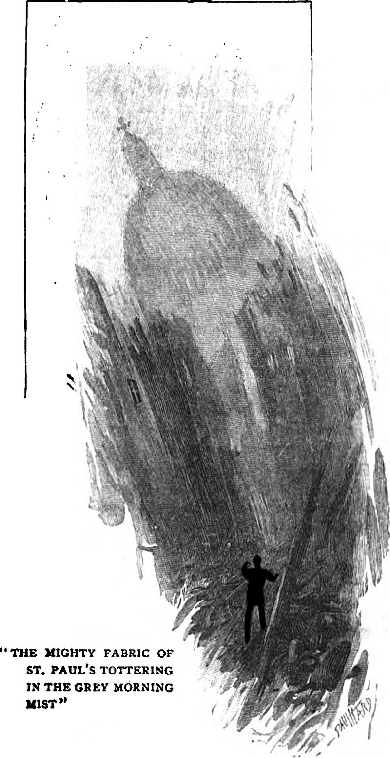 "The mighty fabric of St. Paul's tottering in the grey morning mist," from "London Undermined," Cassell's, 1893.
