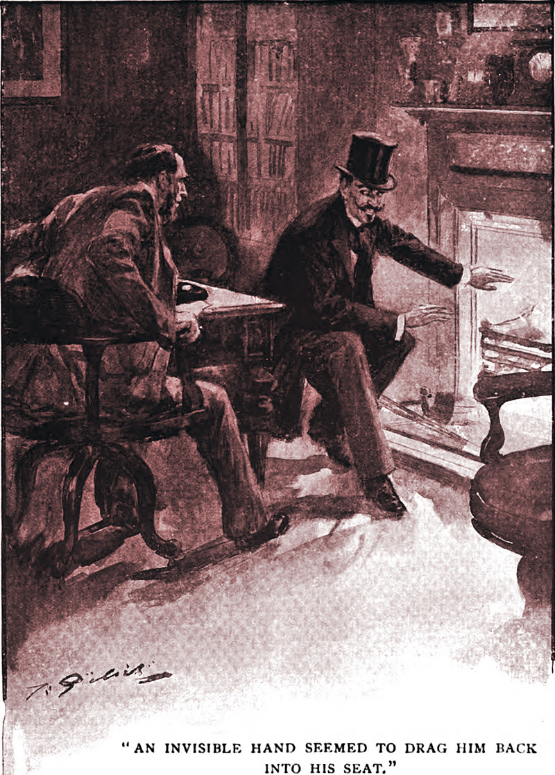 "An invisible hand seemed to drag him back into his seat," from "The Devil's Manuscript" by S. Levett Yeats, in Cassell's, 1876.