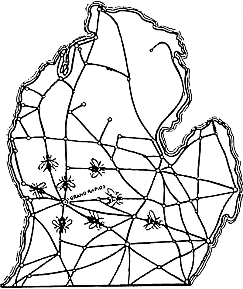 #vintage illustration #bees #strange map #1900s #michigan #mitten state #illustration