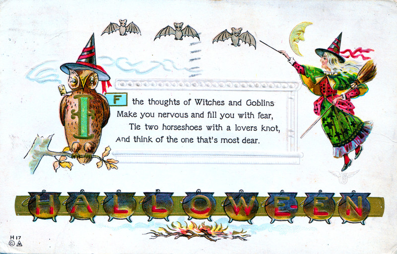 Here's a glass of water ritual and a horseshoe spell for banishing accelerated heartbeats on Hallowe'en.  (From 1913.)
