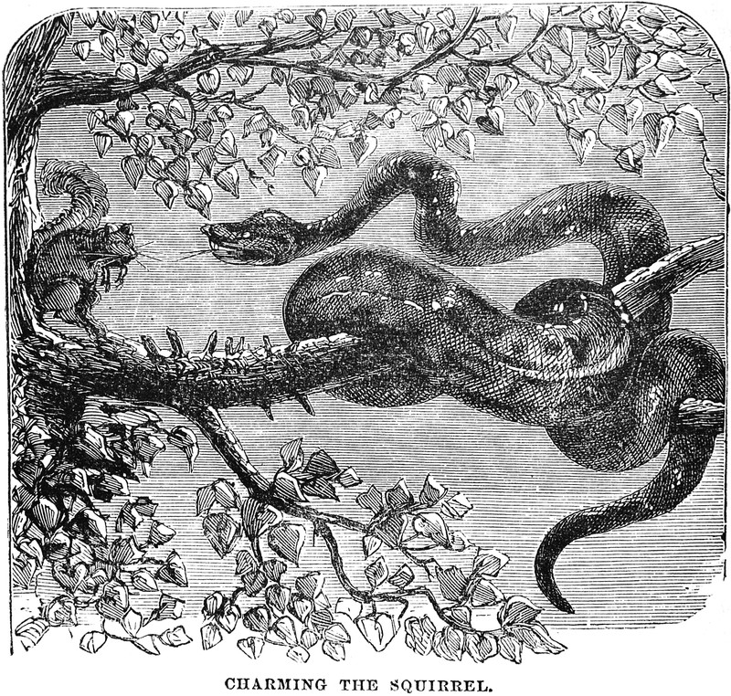 "Charming the squirrel," from Polar and Tropical Worlds by Georg Hartwig, 1880.
