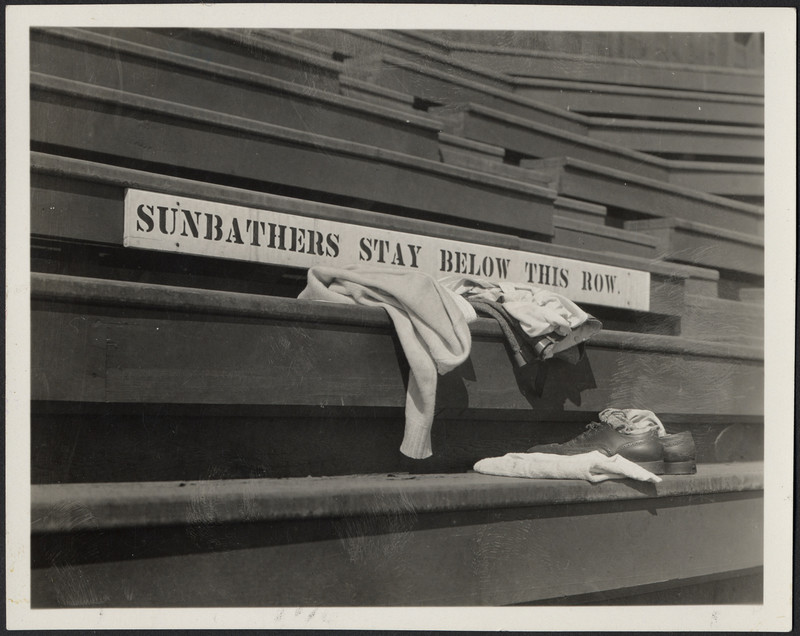 "Sunbathers stay below this row."  Photo courtesy of the Stanford Historical Photograph Collection.