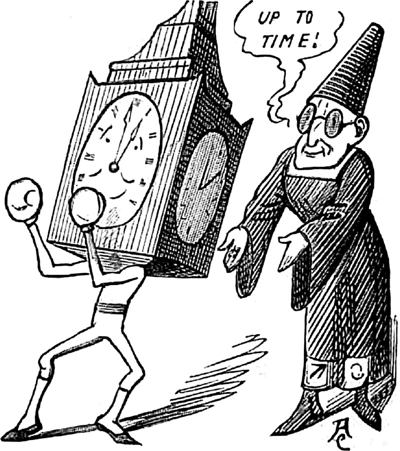 #vintage illustration #wizard #anthropomorphism #boxing #clock face #clock #illustration #1880s