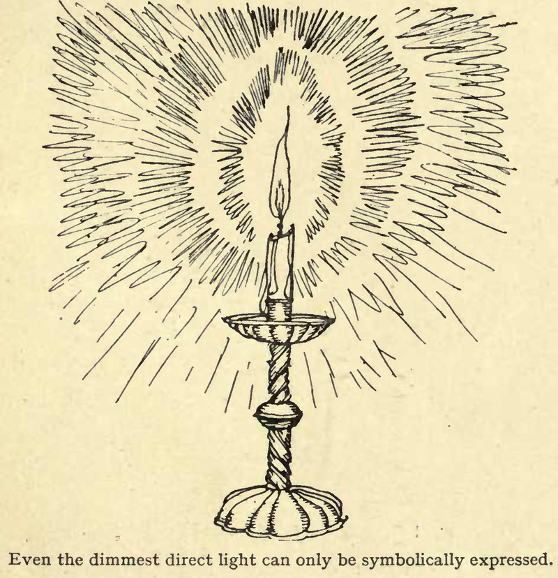 "Even the dimmest direct light can only be symbolically expressed."  From Line: An Art Study by Edmund J. Sullivan, 1922.