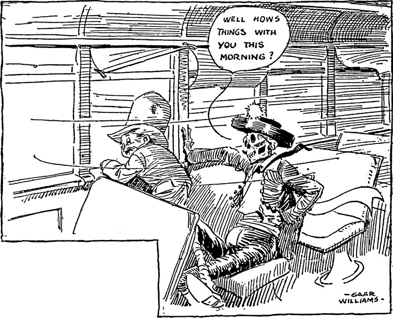 "Well how's things with you this morning?"   From Cartoons Magazine, 1918.