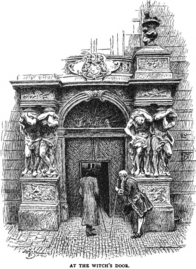 "At the witch's door."  From English Illustrated, 1890.