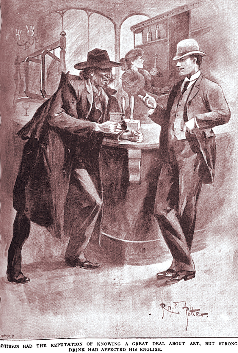 "Smithson had the reputation of knowing a great deal about art, but strong drink had affected his English."  From English Illustrated, 1894.