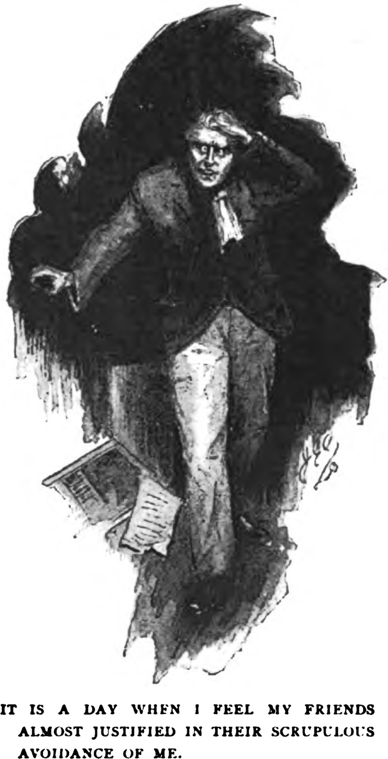 "It is a day when I feel my friends almost justified in their scrupulous avoidance of me."  From English Illustrated, 1898.  (Previously, we discovered this precursor to the "unfollow" and "unfriend" phenomenon of social media.)