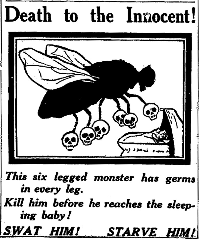 "Death to the innocent! This six legged monster has germs in every leg. Kill him before he reaches the sleeping baby! Swat him! Starve him!" From The Gastonia Gazette, 1917.