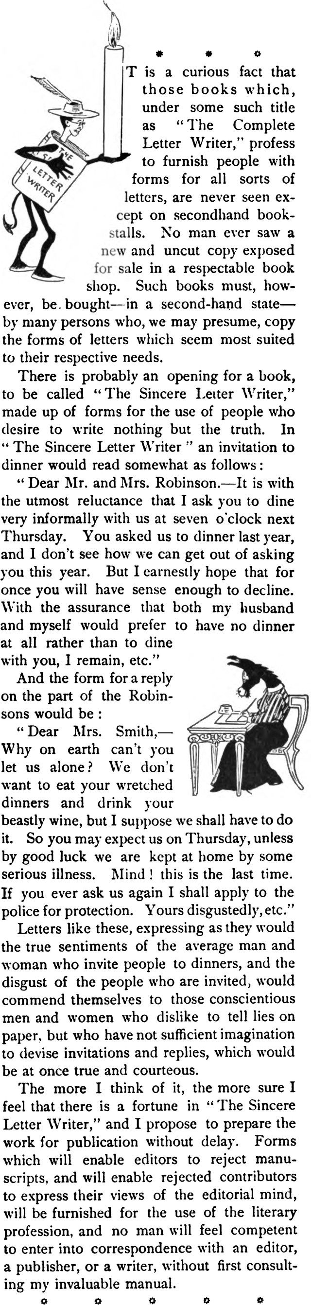 Someone should write a book of form letters that tell the truth.  From Pearson's, 1897.
