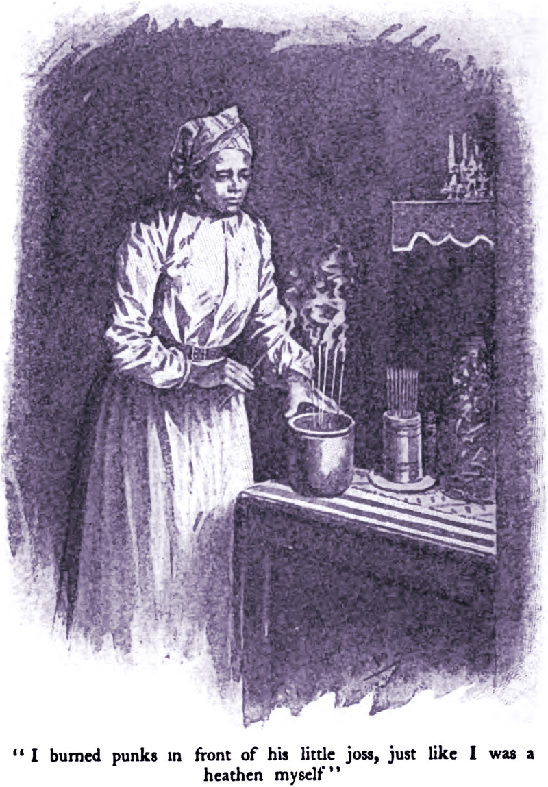 "I burned punks in front of his little joss, just like I was a heathen myself."  From Pearson's, 1903.