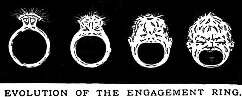 "Evolution of the engagement ring," by Shef Clarke for Puck, via an ad in Pearson's, 1910.