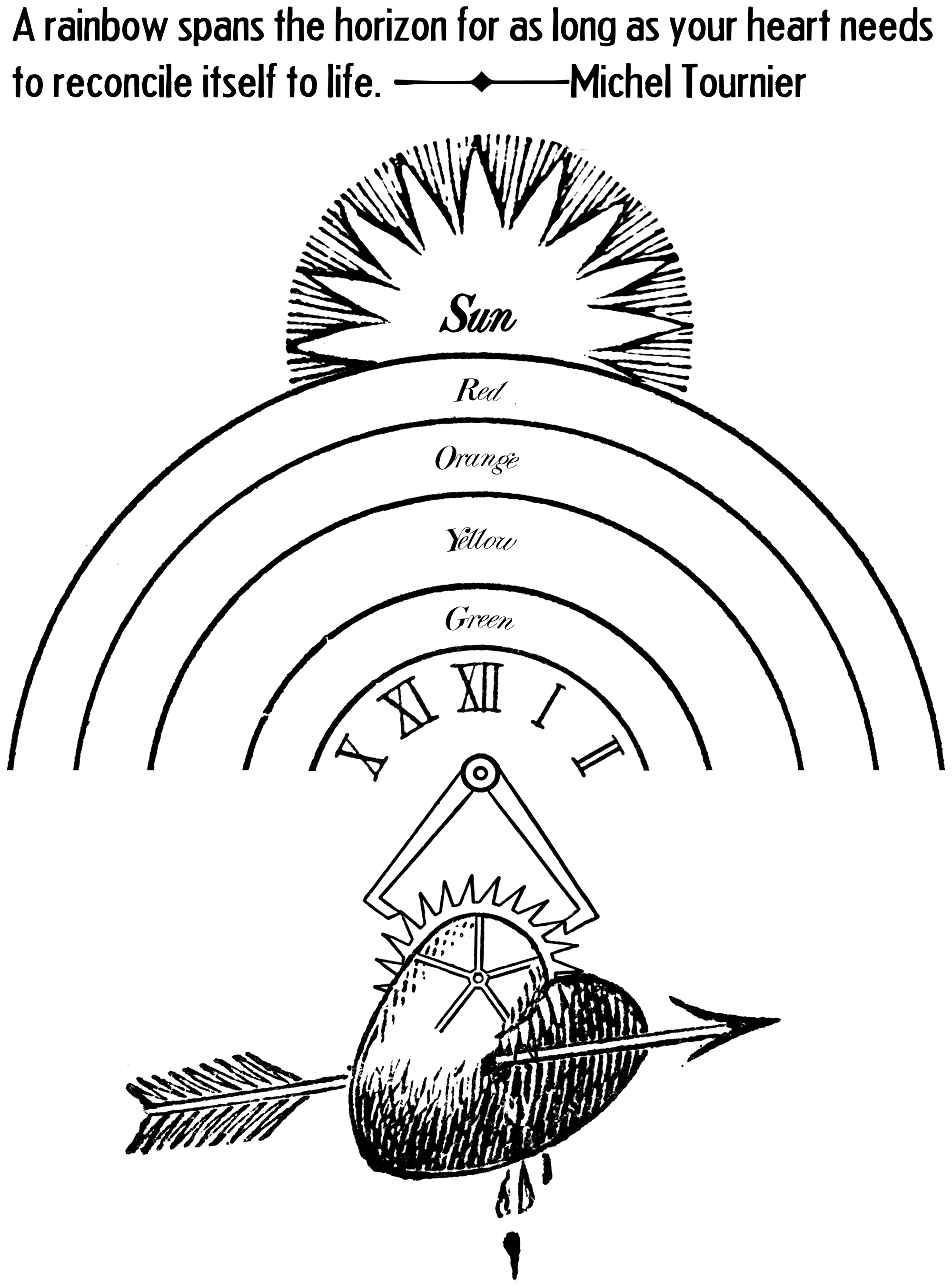 "A rainbow spans the horizon for as long as your heart needs to reconcile itself to life." —Michel Tournier (as quoted in A Thousand Plateaus by Deleuze & Guattari).