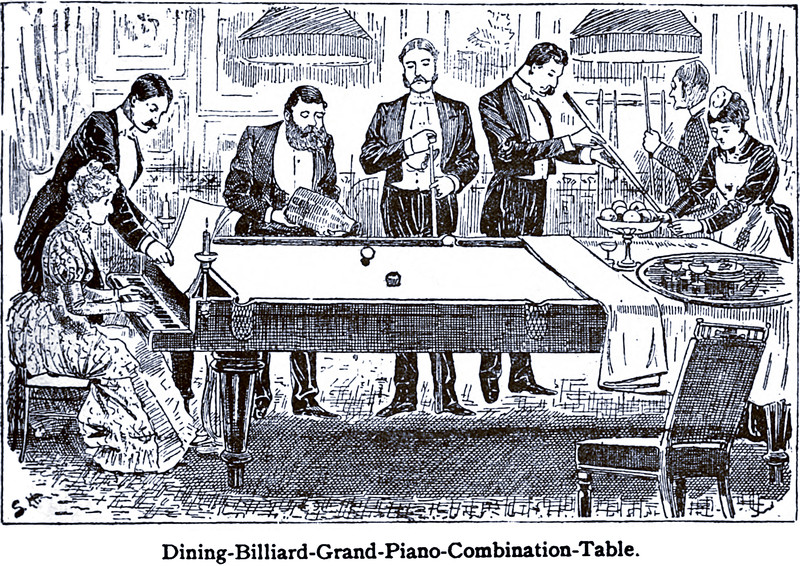 Here's the dining-billiard-grand-piano-combination-table, from Grip, 1890.