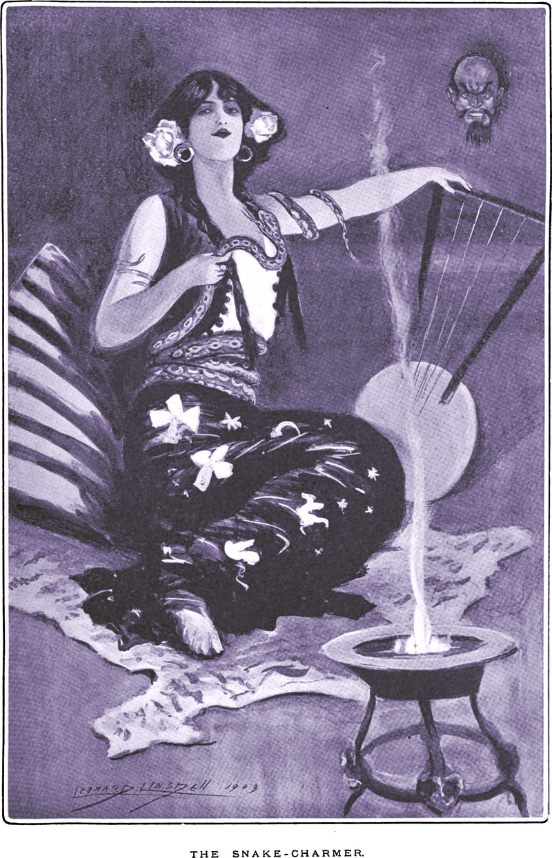 "The snake-charmer" by Leonard Lindell for The Sketch, 1903.