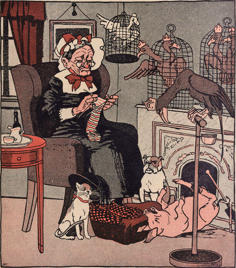 #vintage illustration #knitting #illustration #europe #grandmother #two-headed eagle