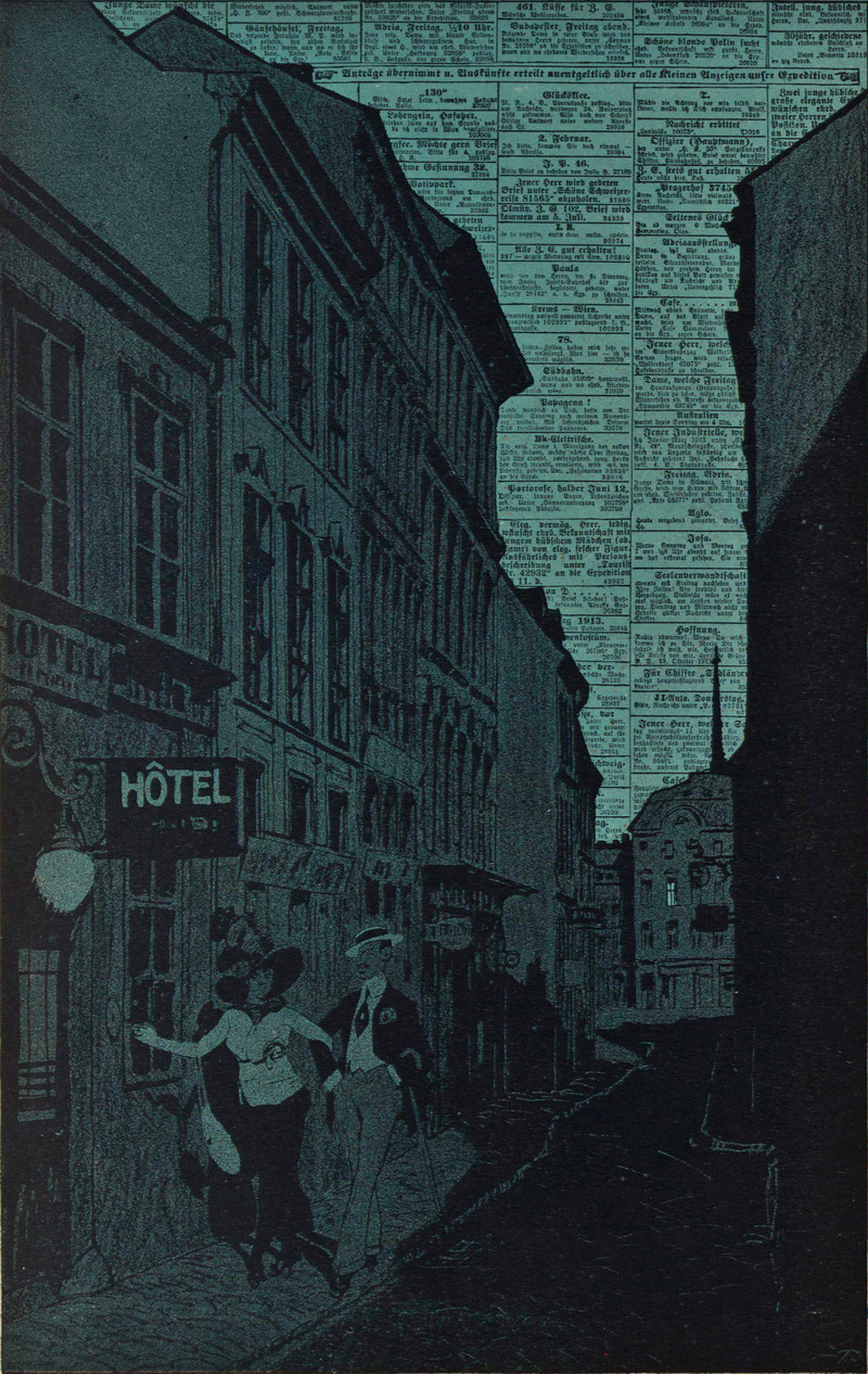 Before William Gibson's sky "the color of television, tuned to a dead channel," there was the sky the color of want-ads, from Die Muskete, 1913.
