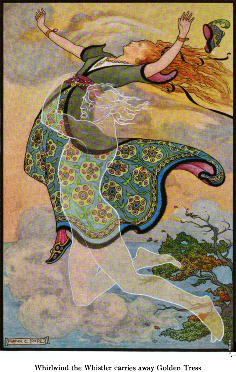 "Whirlwind the Whistler carries away Golden Tress," from The Russian Story Book by Richard Wilson, 1916.