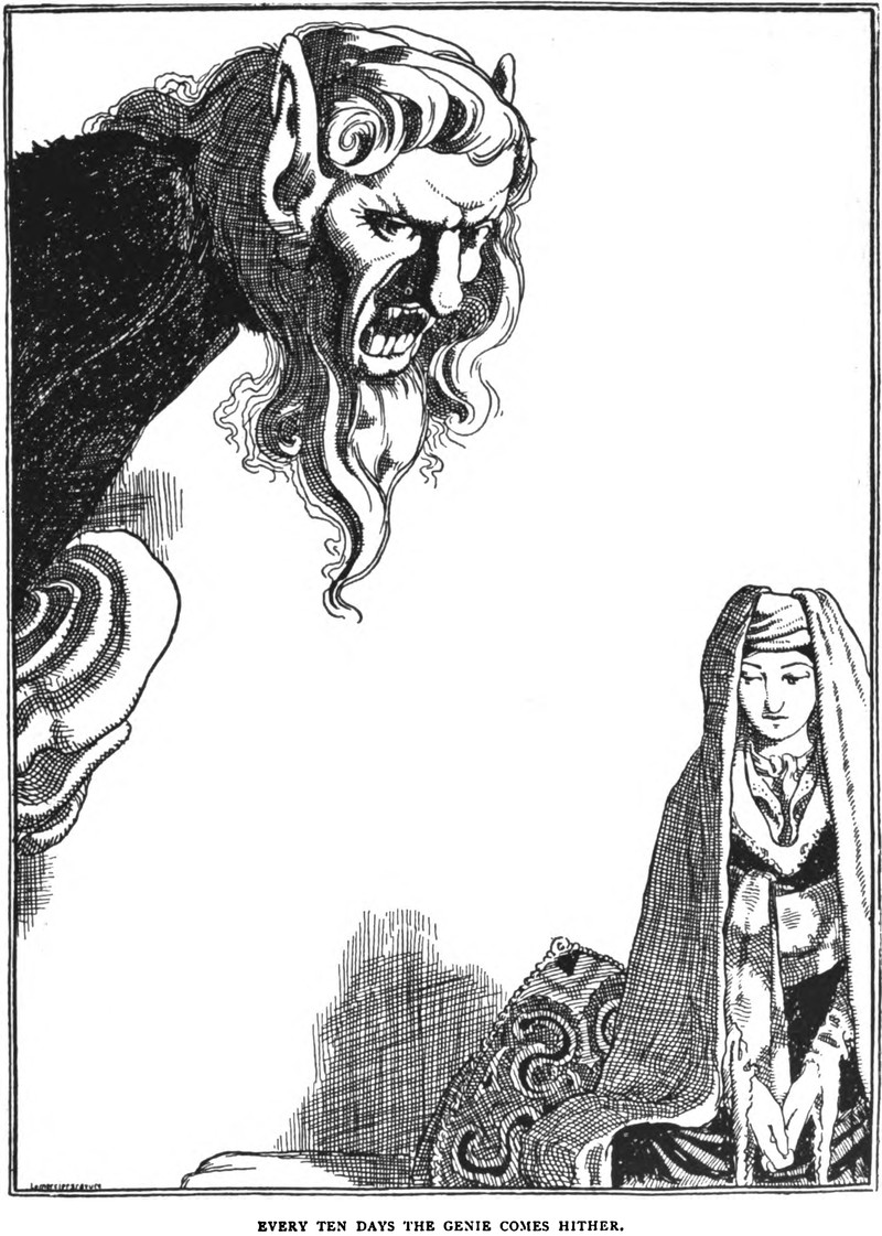 "Every ten days the genie comes hither."  From The Arabian Nights Entertainments, 1899