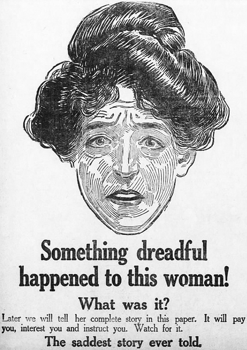 "Something dreadful happened to this woman!"  From The Leavenworth Post, May 16, 1910.