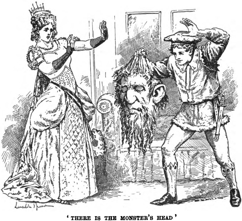 "There is the monster's head."  From Fairy Tale Plays and How to Act Them by Mrs. Hugh Bell, 1896.
