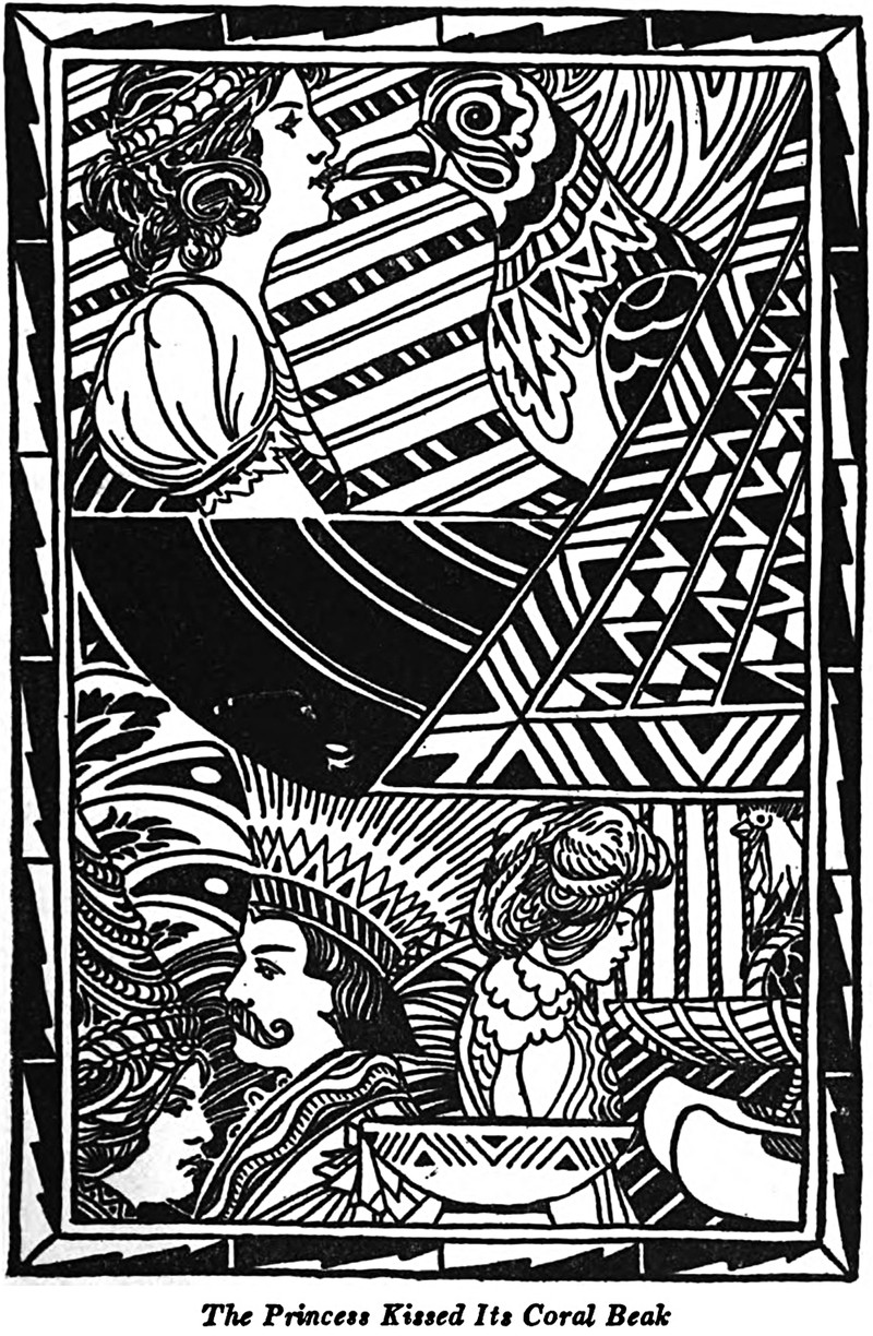 "The princess kissed its coral beak."  From The Laughing Prince by Parker Fillmore and illustrated by Jay Van Everen, 1921.