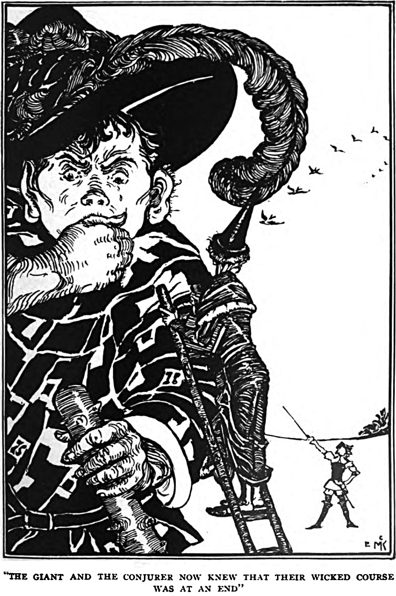 "The giant and the conjurer now knew that their wicked course was at an end." From The Fairy Ring by Kate Douglas Wiggin & Nora Archibald Smith, illustrated by Elizabeth MacKinstry, 1916.