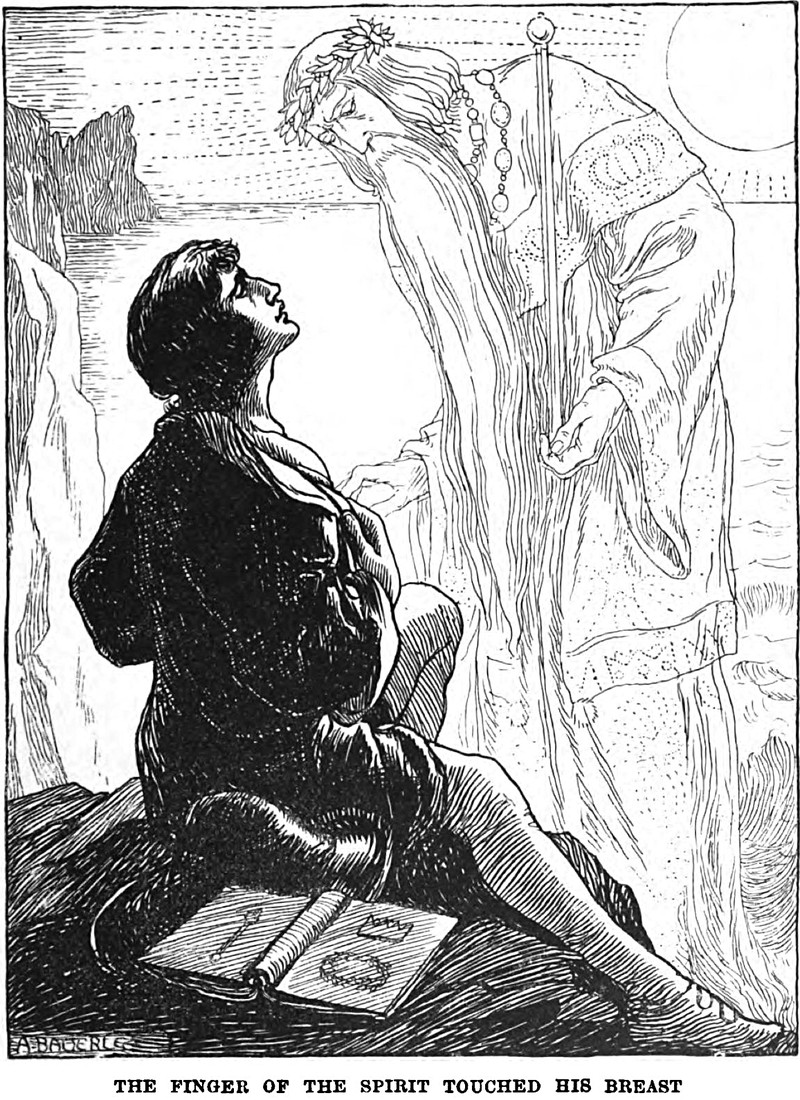 "The finger of the spirit touched his breast."  From Allegories by Frederic W. Farrar, 1898.