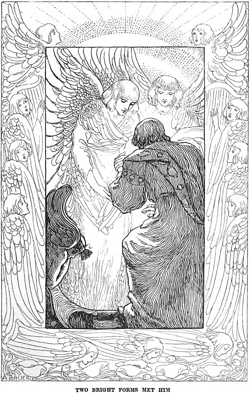 "Two bright forms met him."  From Allegories by Frederic W. Farrar, 1898.