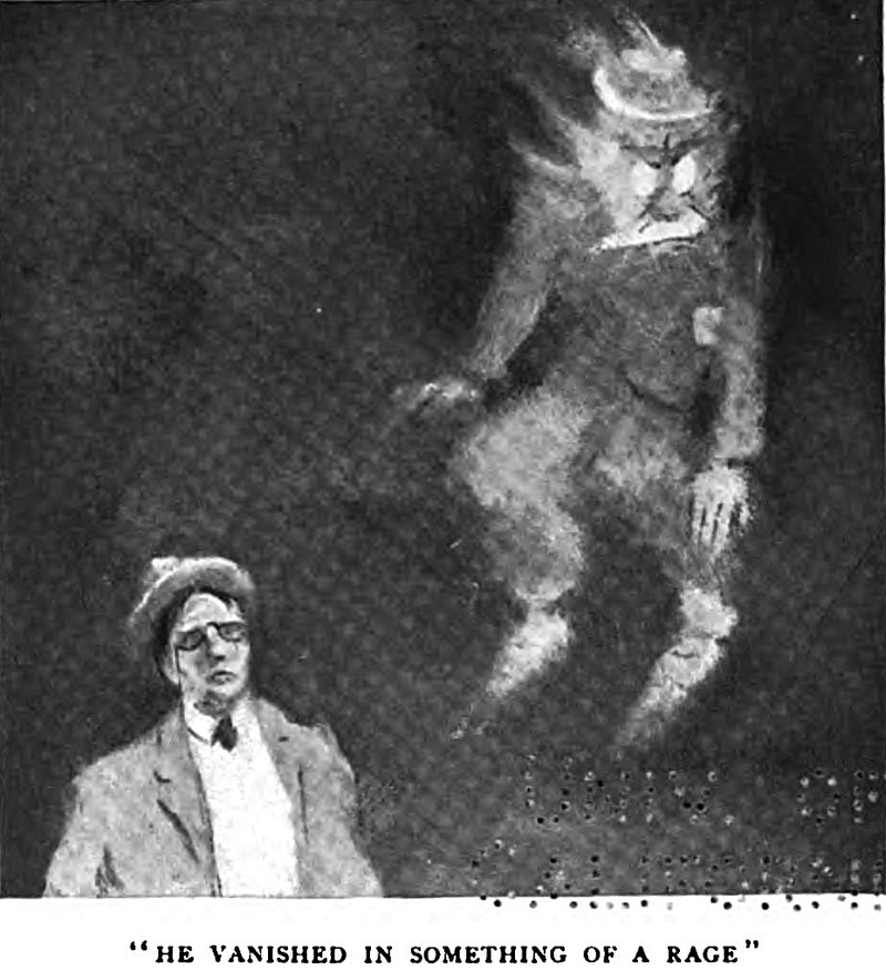 "He vanished in something of a rage."  From Over the Plum Pudding by John Kendrick Bangs, 1901.
