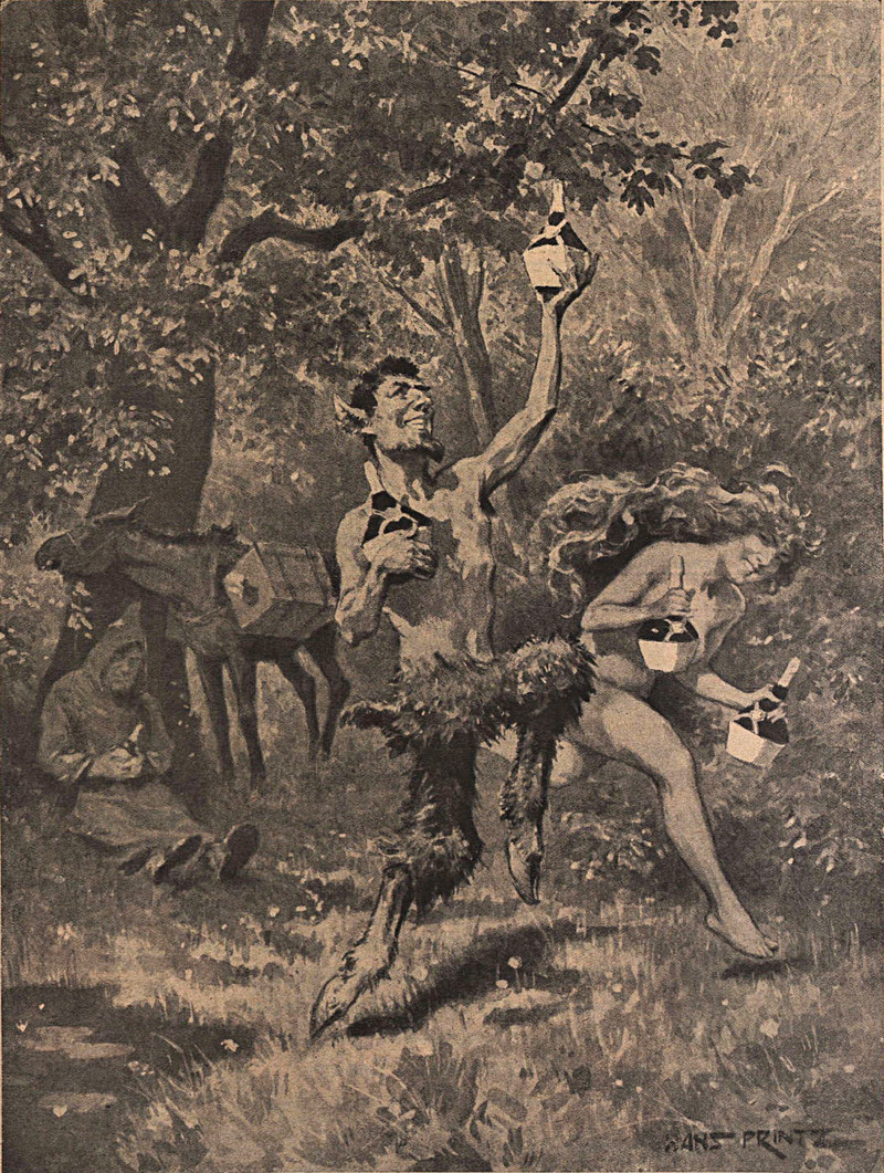 #vintage illustration #satyr #wine #alcohol #faun #illustration #1910s