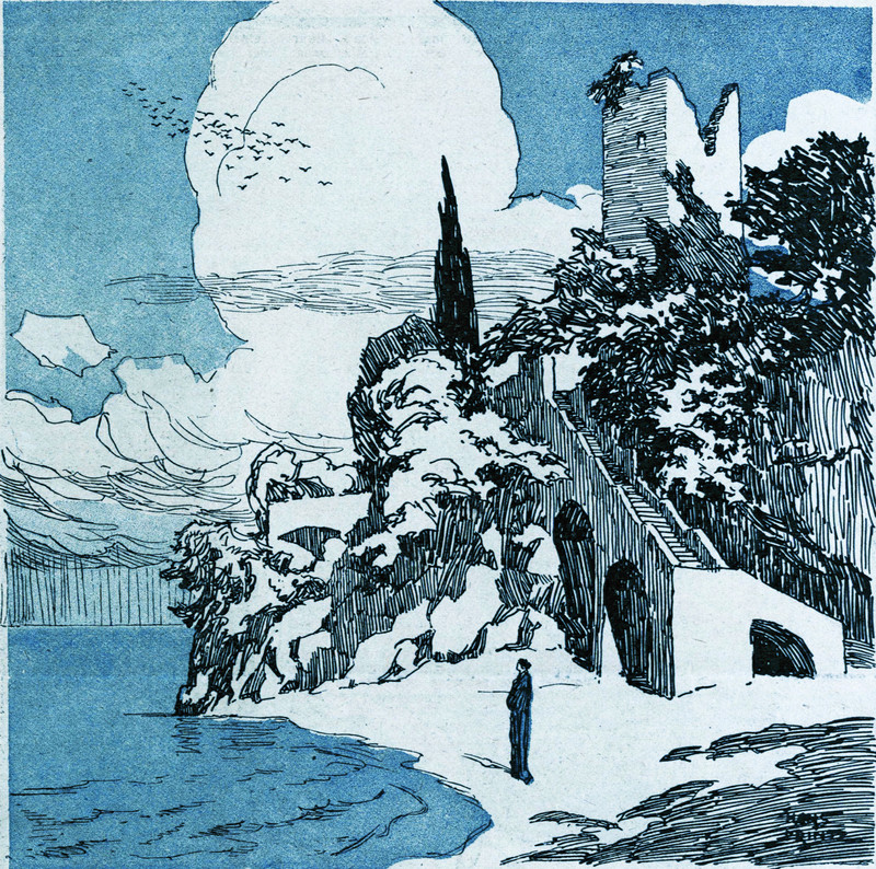#vintage illustration #snow #clouds #ruins #illustration #ruined tower