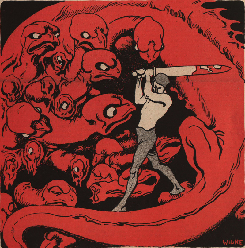 #vintage illustration #mythology #hydra #hero #illustration #many headed