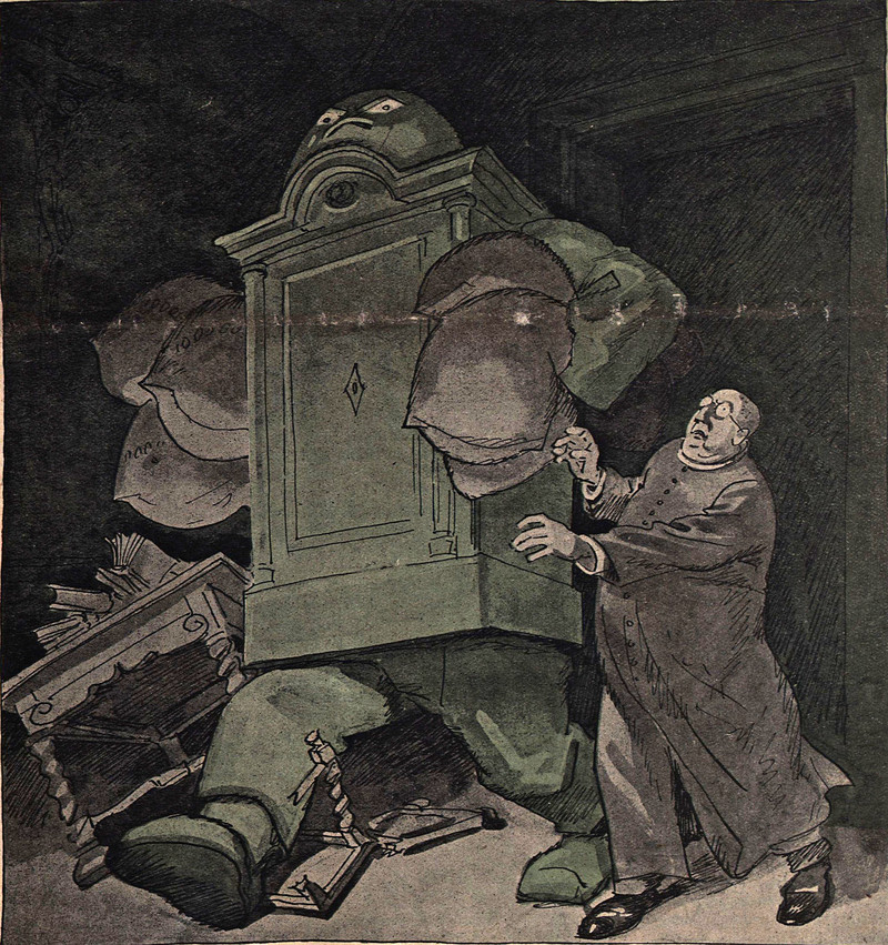 Here's a precursor to the Addams family's Uncle Fester.  The sorcerer's apprentice and the golem, from Die Muskete, 1922.