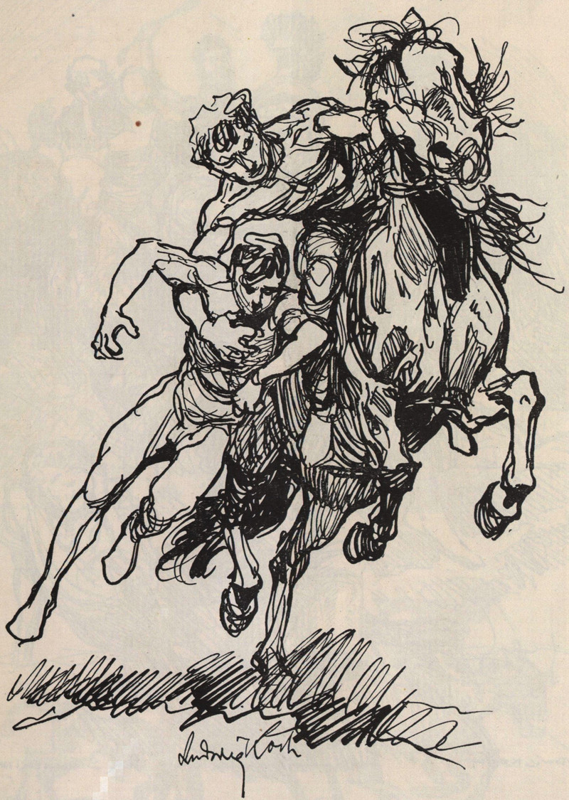 #vintage illustration #pen and ink #horse #illustration #picking up guys