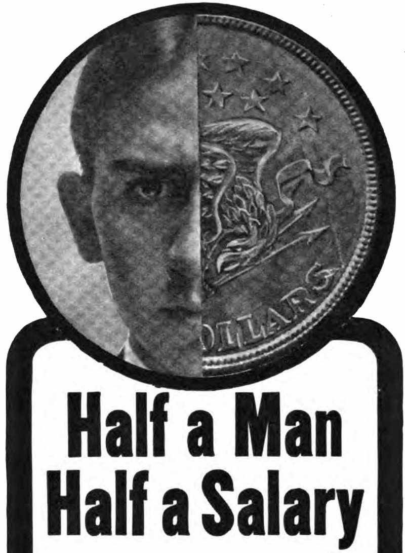"Half a man.  Half a salary."  From Sunset Magazine, 1905.