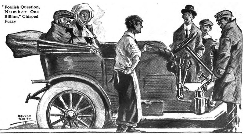 "'Foolish question, number one billion,' chirped Fuzzy."  From Ambition magazine, 1911.
