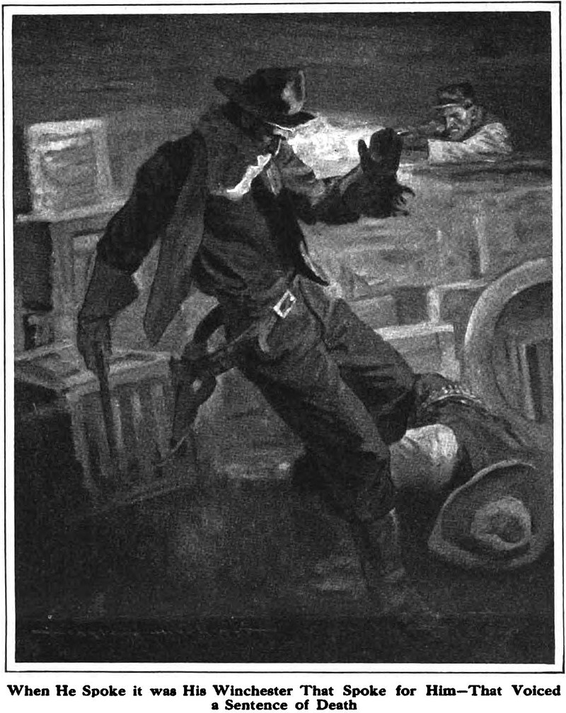 "When he spoke it was his Winchester that spoke for him—that voiced a sentence of death."  From Ambition magazine, 1911.