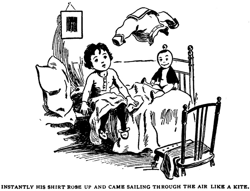 "Instantly his shirt rose up and came sailing through the air like a kite."  From Andy's Adventures on Noah's Ark by Douglas Zabriskie Doty, 1902.