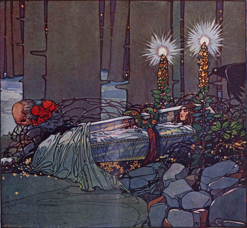 #vintage illustration #fairy tale #coffin #glass coffin #illustration