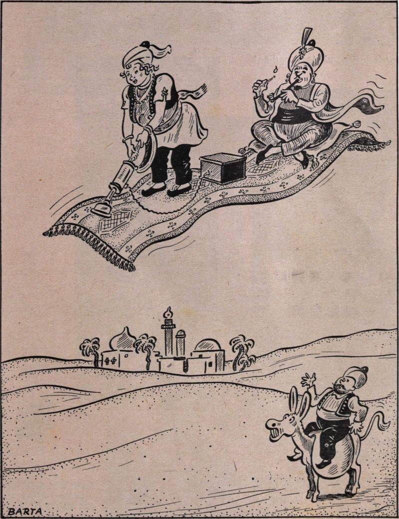 #vintage illustration #illustration #flying carpet #carper cleaner