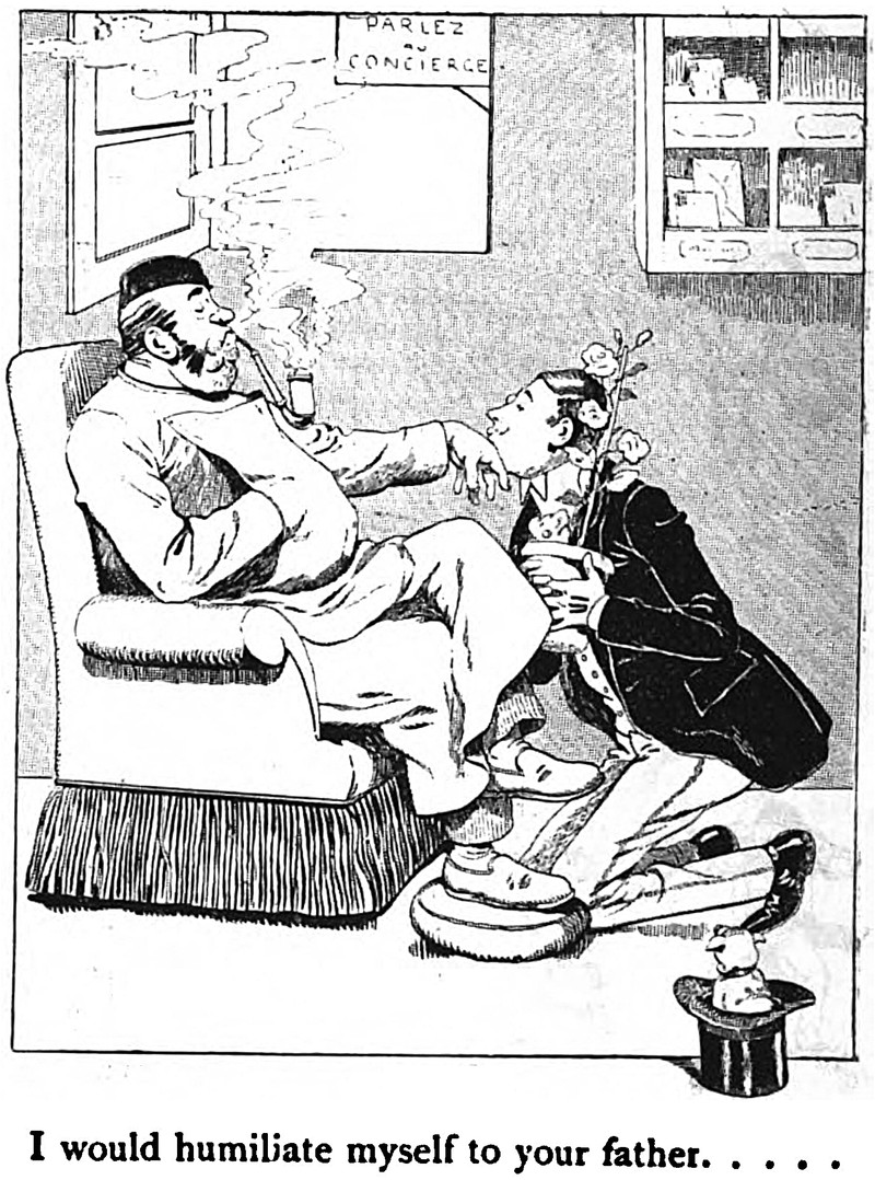 "I would humiliate myself to your father."  From Pick Me Up, 1892.