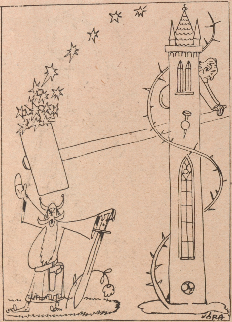 #vintage illustration #1940s #tower #illustration #hammer