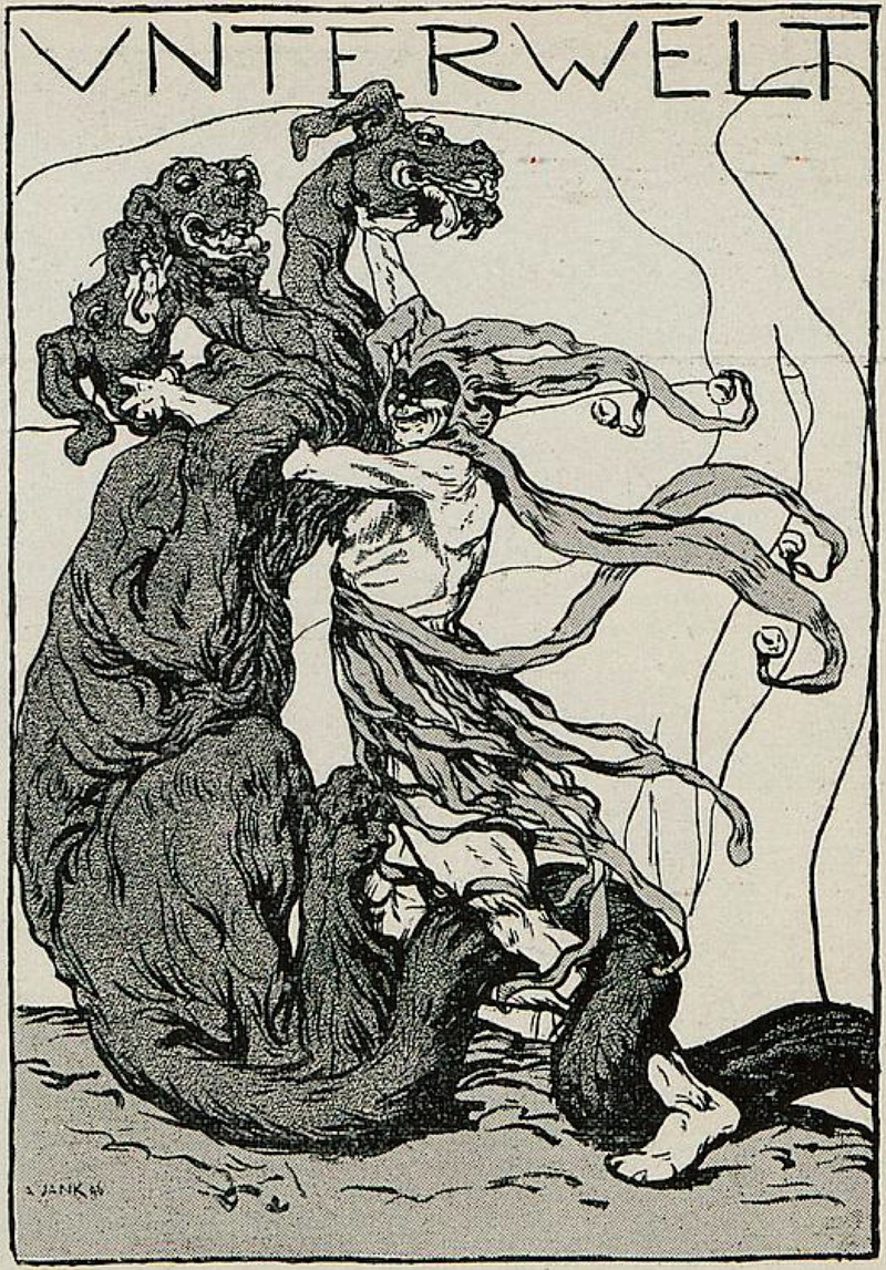 #vintage illustration #hell #jester #underworld #cerberus #illustration