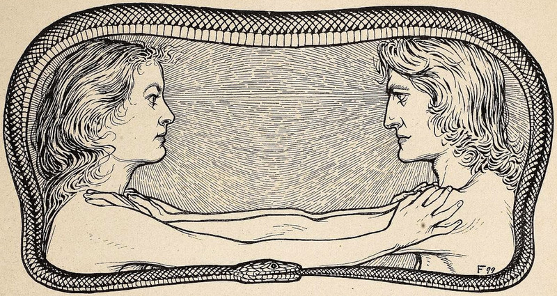 #vintage illustration #serpent #mesmerism #hypnotism #ouroboros #adam and eve #eye to eye #illustration #art