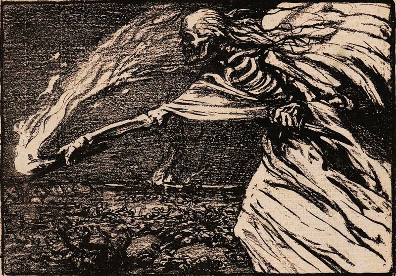 #vintage illustration #skeleton #angel of death #grim reaper #1900s #illustration #torch #art