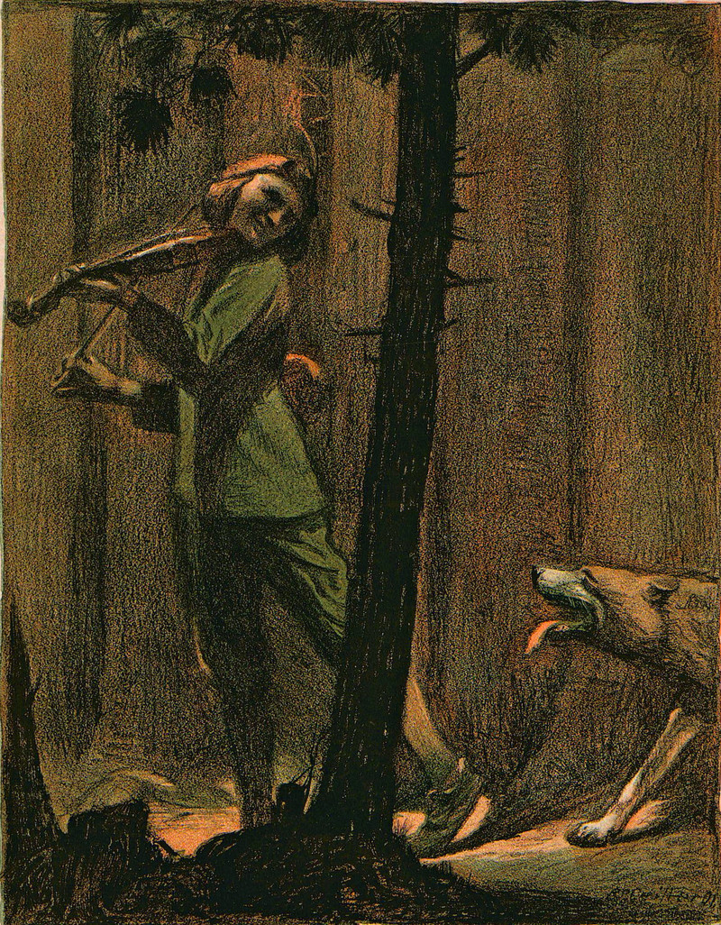 #vintage illustration #wolf #woods #violin #musician #illustration #art