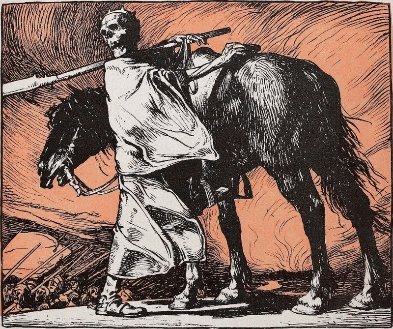 #vintage illustration #death #skeleton #grim reaper #king death #illustration