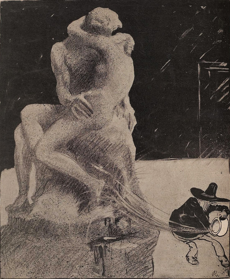 #vintage illustration #statue #living statue #illustration #public displays of affection #chamber pot #kissing in public #art