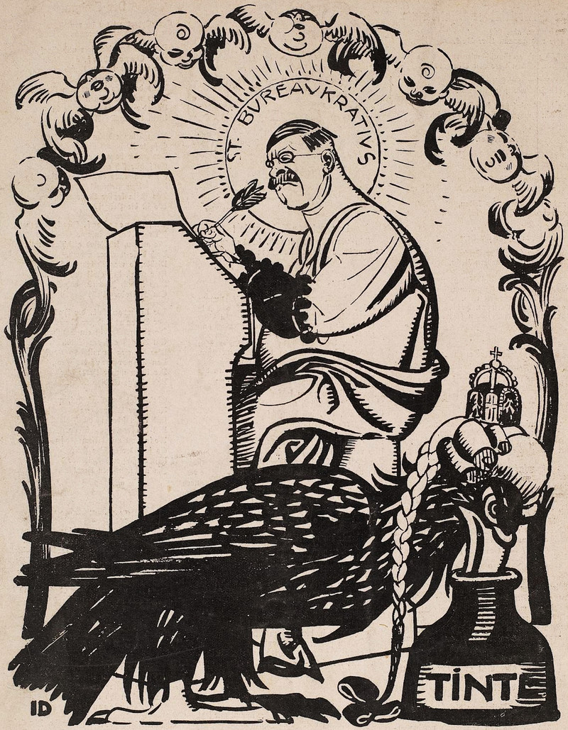 Here's the patron saint of bureaucrats.  From Jugend, 1906.